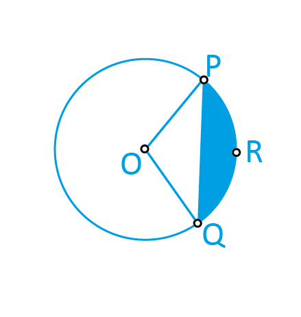 O segmento circular é a área delimitada por uma corda e por um arco de circunferência. Na figura, está representada pela área hachurada em verde. Observa-se que este segmento é obtido pela subtração do triângulo isósceles POQ do setor circular de centro O e arco PQ.