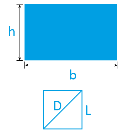 No caso especial em que b = h temos um quadrado (todos os lados iguais). Chamando o lado do quadrado de L, temos: