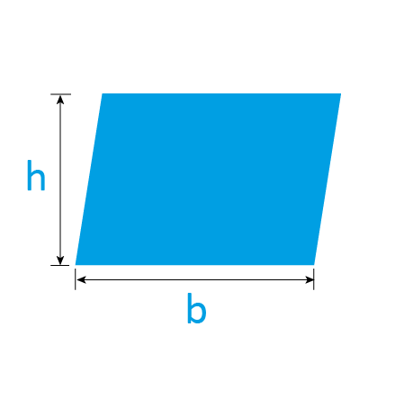 Os lados são paralelos e de igual tamanho dois a dois. Os ângulos entre os lados dependem das medidas dos lados. Apesar de ser a mesma fórmula do retângulo, deve-se atentar que h neste caso não é a medida do lado da figura, mas sim perpendicular à base.
