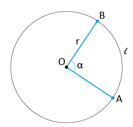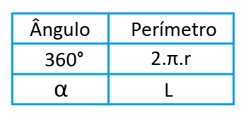 Comprimento Arco de circunferência (L): Dado um arco de circunferência (AB) representado pelo ângulo α, fazendo uma regra de três temos: $$ L = π .r. α / 180º $$
