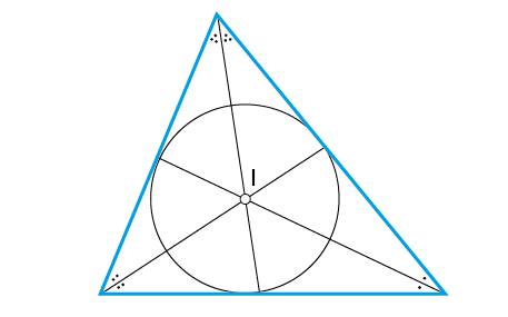 As bissetrizes concorrem no ponto I, chamado de incentro.