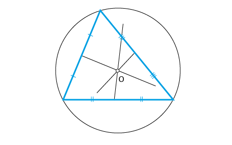As mediatrizes concorrem no ponto O, chamado de circuncentro. Observe ainda que o circuncentro é o centro da circunferência circunscrita ao triângulo.