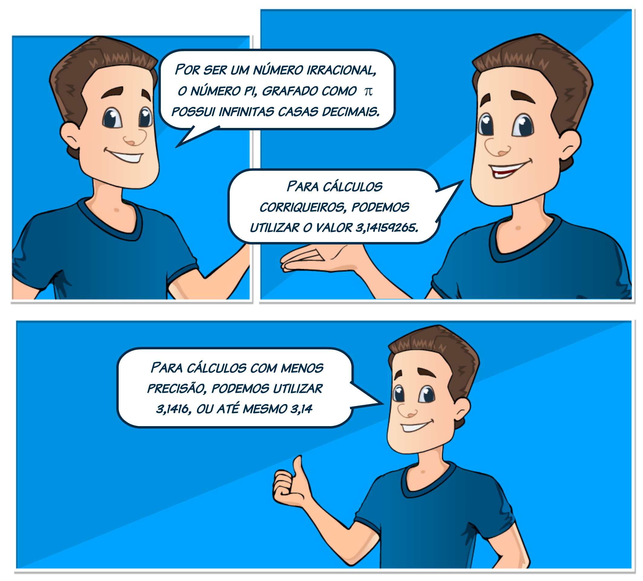 Comprimentos da Circunferência (C): Dada uma circunferência de raio r, o perímetro (comprimento) da mesma é: $$ C = 2. π .r $$
