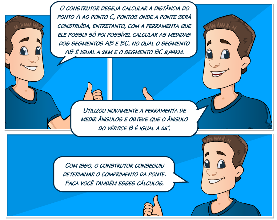 A lei dos co-senos estabelece uma relação entre os lados de qualquer triângulo e seus ângulos, através do valor dos co-senos.
