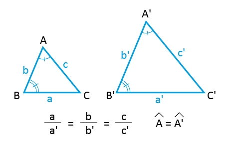 $$ { AB \over DE } = { AC \over DF } = { BC \over EF } = k $$
