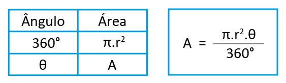 É a área de um pedaço do círculo, representado pelo ângulo . Similar ao cálculo do comprimento de arco de circunferência, fazemos uma regra de três: